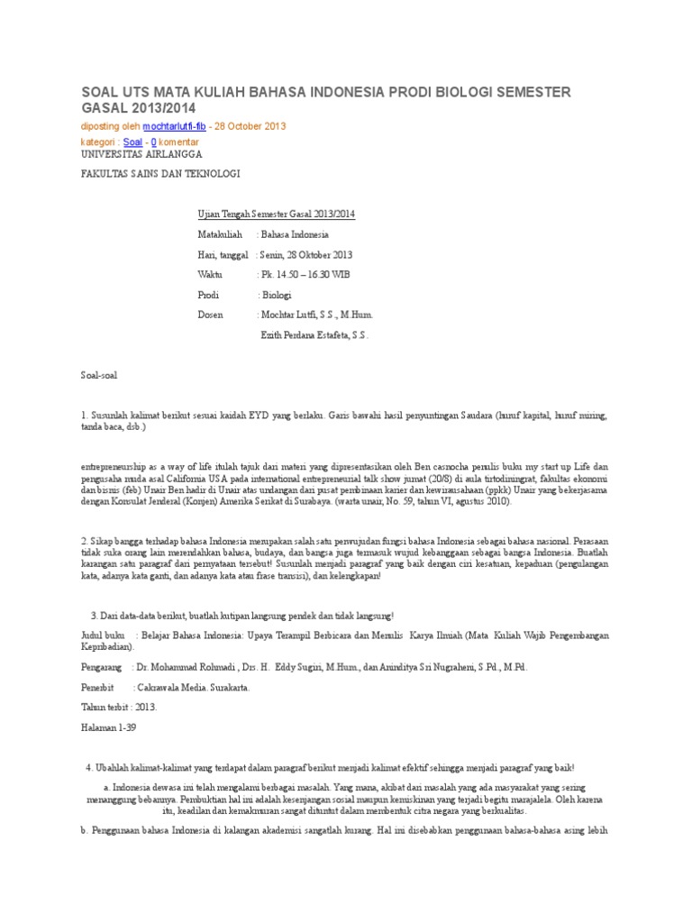 Soal uts mata kuliah bahasa indonesia. We did not find results for: Maybe you would like to learn more about one of these? Check spelling or type a new query.