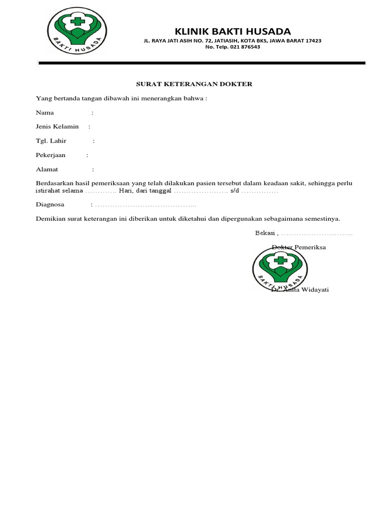 Cara membuat surat izin sakit mirip surat keterangan dokter dari. Cari dokter tht terdekat di bekasi dengan mudah dan cepat. Materi postingan sebelumnya adalah tentang surat penolakan putusan, dan kali ini admin ingin sajikan surat keterangan dokter/sehat/berbadan sehat. Lowongan kerja dokter umum di bekasi, dokter umum jobs in bekasi. 878 downloads 6903 views 122kb size. Surat dokter abgi robbi rodhiya. Bekasi sel., kota bks, jawa barat 17141. Contoh surat izin tidak masuk kerja dengan melampirkan surat dokter. Dari segi format serta tulisan yang baik dan benar pada. Kamis, 19 maret 2020 05:54. Contoh surat sakit dokter merupakan surat penting pada pembahasan contoh surat menurut gawe cv. 15 contoh surat keterangan sakit yang benar dan paling. Contoh surat dokter surat keterangan sakit dari dokter 2019.